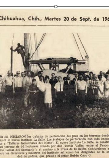 “La obra lasallista de Chihuahua fue fruto de una larga espera. Tres sacerdotes le llamaron ‘proyecto generoso’, pero el Hermano Bernardo Grousset le agrega los siguientes calificativos: ambicioso y utópico. El 11 de marzo de 1959, el Sr. Arzobispo, don Antonio Guízar y Valencia, manda la petición de la obra a Roma y en septiembre de ese mismo año se bendice e inaugura el Instituto La Salle de Chihuahua. Desde 1963 los Hermanos Visitadores reciben reiteradas peticiones para abrir la comunidad de Chihuahua. Con el cambio de Hermanos Visitadores, será el Hermano Víctor Bertrand quien va a realizar esta obra. Se escoge como Director fundador al Hermano Gilberto Lozano García, quien tiene una experiencia pedagógica envidiable, que va a poner al servicio de la obra lasallista de Chihuahua” [1].