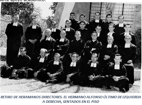 “1958, mes de julio. El Hermano Alfonso va a retiro y el 21 de ese mes hace su Profesión Perpetua… llega a ser el brazo derecho del Hermano Director, asumiendo el cargo de subdirector, sin título, inspector por unanimidad, secretario “pro tempore”, además de responder directamente por el Periódico ‘Conquista’, al cual le dio un gran impulso, ayudado de sus alumnos: