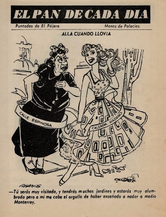 Monterrey de las montañas, tú que estás a la par del río, que a veces, con la lluvia te haces una sopa, cuando sale de su cauce le río, que hasta la Virgen del Roble cuelga a secar su vestido…Dios puso entre las montañas un nuevo Edén y lo llamó Monterrey”.