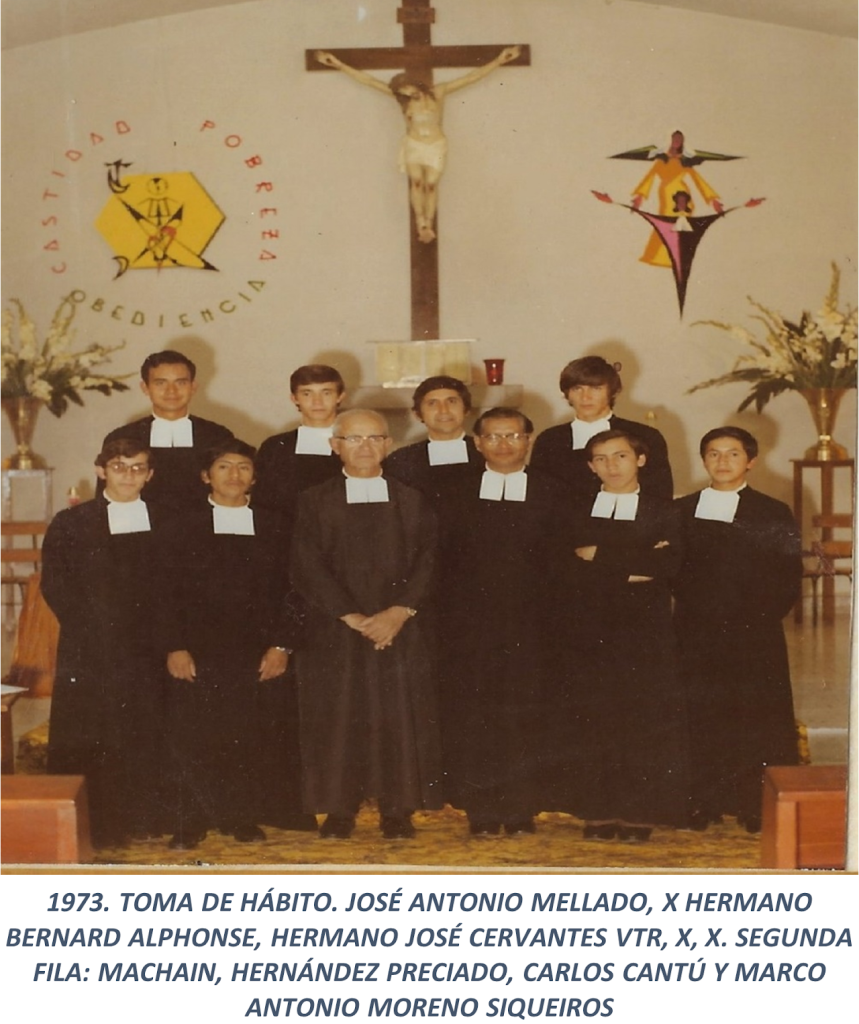 Sus formadores fueron el Hermano Director Bernard Alphonse y los Hermanos Subdirectores Emilio Elcoro y Leopoldo Angulo, y el buen Hermano ecónomo, Gabriel Caballero, sus compañeros fueron los ahora Hermanos. Recibe el Santo Hábito, el Nuevo Testamento, un Crucifijo y un Rosario de seis decenas propio del Instituto.