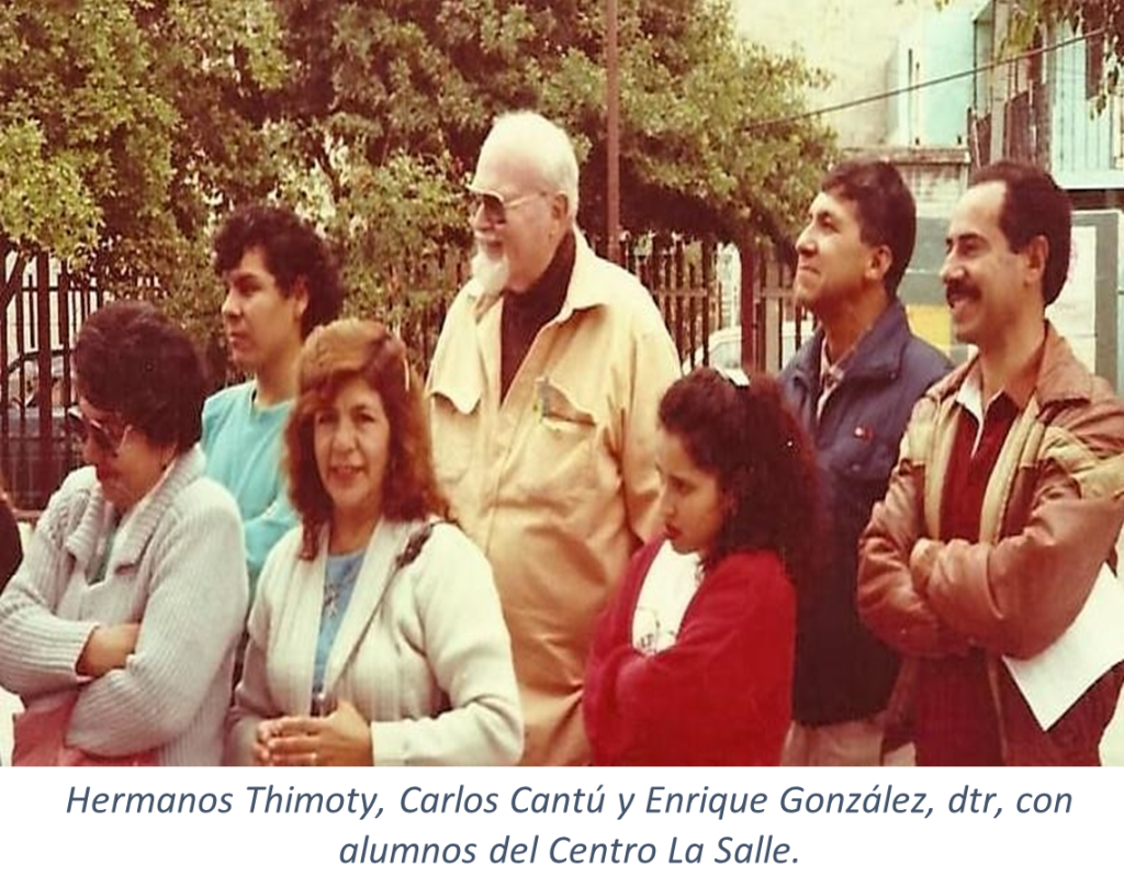 Activo con el Patronato del Centro La Salle. En la foto durante el día de muertos iban al Panteón a vender flores para recabar fondos. Clases bien preparadas que atraían a los alumnos. Cuando falleció el Hermano Carlos los alumnos pidieron que el salón donde daba sus clases se llamara Salón H. Carlos Cantú Mendoza,