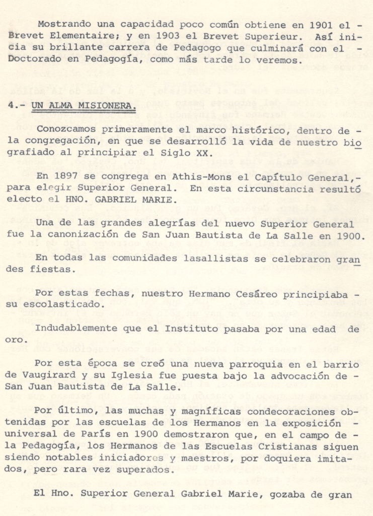 ¡El 23 de octubre de 1900 El Hno. Cesáreo llega al Escolasticado de Besançon, allí se forma al “Maestro” y qué Maestro! El Hno. Cesáreo fue un auténtico Maestro, como lo probaremos más tarde.