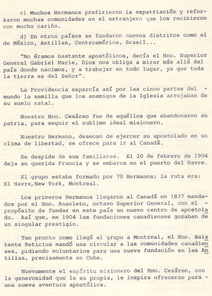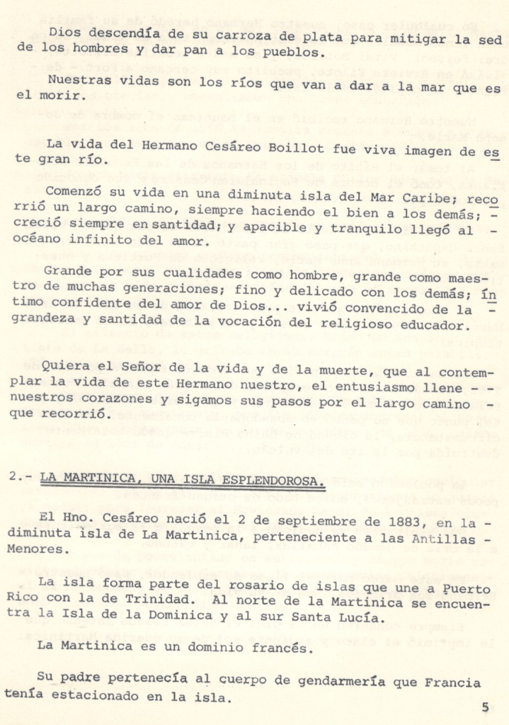 El Hno. Cesáreo nació el 2 de septiembre de 1883, en la diminuta isla de La Martinica, perteneciente a las Antillas Menores.