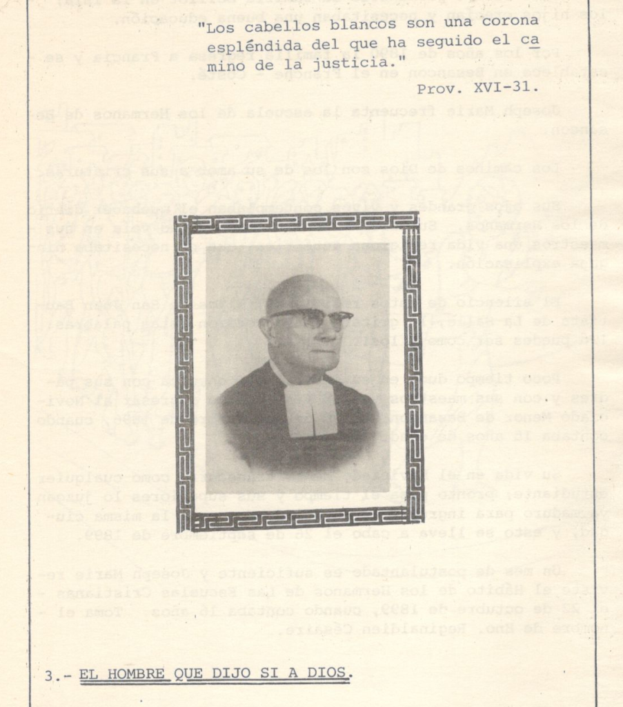 El Hno. Cesáreo recibió en el bautismo el nombre de Joseph Marie.