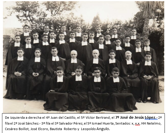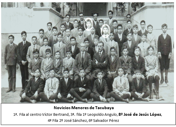 De regreso a la Patria, precisamente, fue a la finca de Los Amores, para iniciar la siguiente etapa de su formación: el Postulantado y, unos meses después, su Noviciado. Era el año de 1930. Entre sus compañeros se encontraban Hermanos muy notables, como el Hermano Víctor Bertrand, Juan del Castillo, Ismael Huerta, Salvador Pérez, Alfonso Sanabria y José Sánchez. Comenzaron su Postulantado el 26 de agosto de 1930, algunos de ellos, y otros, unos días después, pues venían de Cuba. La mayoría de ellos tomó el Santo Hábito el 10 de diciembre de ese mismo año; el Hermano Jesús López lo recibió el 1° de febrero de 1931, pues aún no cumplía sus 16 años, edad requerida para revestir la librea Lasallista y comenzar a ser el Hermano Agustín Víctor. Su director de Noviciado fue el Hermano Benildo Justino, hombre sabio y prudente, que sabía ser amable en su exigencia y gran formador. Este Hermano era auxiliado por el Hermano Bernabé María; sin dudarlo, a estos Hermanos, igual que al Hermano Cesáreo, se les puede dar el calificativo de grandes formadores, por la forma como impulsaron la formación del carácter y de la conciencia de los jóvenes que pasaron por sus manos. Esta etapa de la vida del Hermano Jesús fue una vida de catacumbas, ya que tenían que esconder sus hábitos religiosos, los libros de oraciones, o de lectura espiritual, y todo aquello que, en una inspección oficial les hiciera sospechar que eran “seminaristas” o algo parecido.