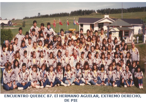 En 1987, con un grupo de una docena de jóvenes participó en el encuentro Juvenil Internacional de Quebec 87. Cual joven Hermano participó en todo el evento, desde Monterrey, donde se inició, Nueva Orleans, Orlando, Washington, Nueva York, Montreal, el lugar del Encuentro, Niágara y el regreso a través del centro de los Estados Unidos. Las peripecias fueron múltiples: en New York el autobús no llegaba y ya estaba pasando mucha gente de color, la policía indicó donde había un botón de alarma por si se necesitaba. Uno de los jóvenes de Cd. Victoria se enfermó y el médico pidió que lo regresaran a México… Pero esas peripecias no fueron impedimento para subir a las Torres Gemelas… a dar la vuelta a la Isla de Manhatan. En Monterreal se gozó mucho el jardín Botánico del Hermano Marie Victorin, el comentó que lo había conocido en un viaje que hizo a Cuba… etc.