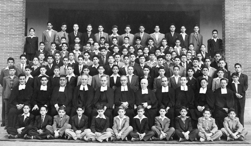 En primera fila, sentados, de derecha a izquierda, el sexto es el Hno. Javier Bordes, director, enseguida el Hno. Visitador Bernard Alphonse Grousset y el siguiente el Hno. Pedro Córdova.