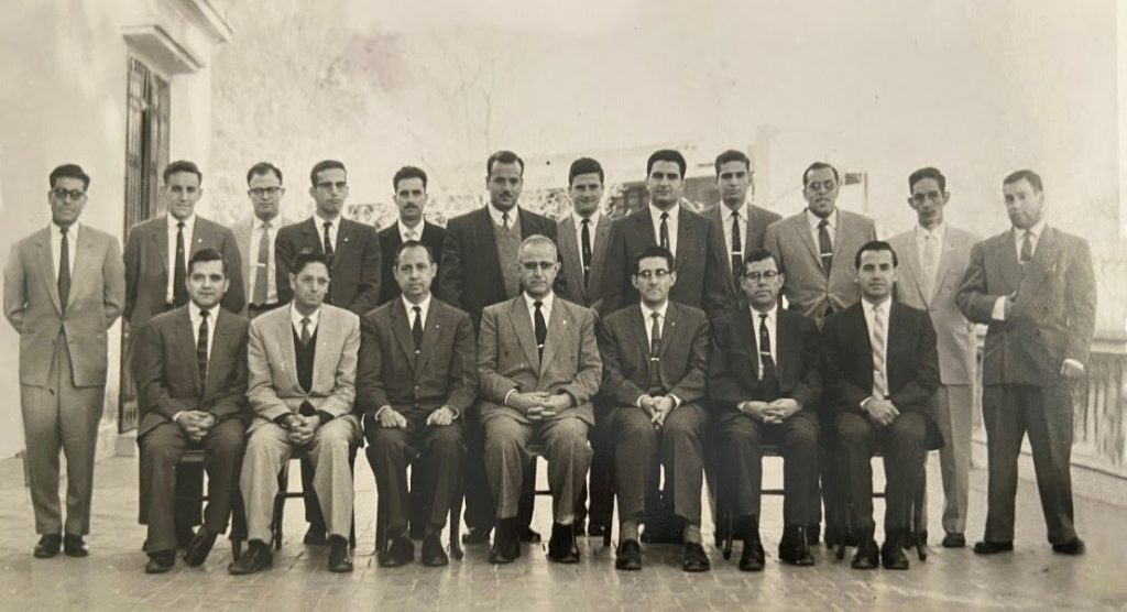 De derecha a izquierda primera fila HH Gilberto Lozano, José Luis Aguilar Hubertino Magaña. Bernardo Grousset Vtr. Víctor Bertrand Vtr. José Sánchez, y Capilla Segunda fila: Rafael Servín, Juan Estudillo, Ernesto Saucedo, Rafael Preciado, Eduardo Guevara, X, Germán Martínez, José Ma. Cordero, Federico González, Juan José Martín del Campo, Enrique Vargas y Sebastián Veloz.