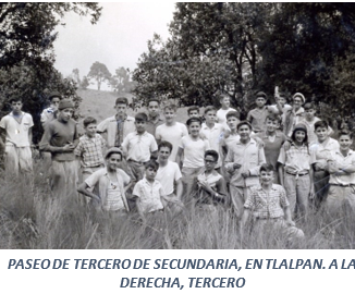 Tercero de Secundaria. Paseo al Xitle. Marcelino es el primeor de pie a la derecha.