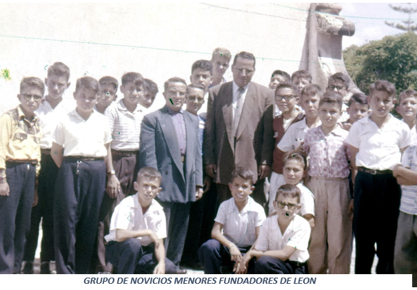 El 2 de agosto de 1958, un grupo de 20 aspirantes pasaron a fundar el Noviciado Menor de León. ¡Una nueva aventura! La casa estaba aún a medio construir pero, poco a poco se fue completando. El Hermano Director fue el Hermano Leopoldo Angulo, hombre tranquilo, prudente, quien estaba acompañado por el Hno. Cesáreo Boillot, un joven Hermano que pronto va a ser cambiado por el Hermano Salvador Pérez, hombre sabio, prudente, buen formador, de una gran capacidad de motivación y de dirección de adolescentes.