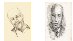 Es una muestra muy pequeña de sus dibujos a tinta, o bien, carboncillo, que realizaba con diferentes técnicas y en espacios de tiempo de minutos, siempre atento a las personas o acontecimientos. Estos dibujos, además de muy estimados, ilustraban algún acontecimiento.