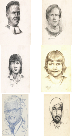 En una carpeta pequeña se encontraron varios dibujos en que se muestra el Hermano Salvador como retratista: Su papá, el Hermano Paul Ayel, Maestros, alumnos, y el Hno. Rodrigo Treviño, que lo dejó inconcluso.