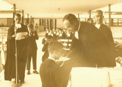 Un relato interesante de su vida y que lo comentaba muchas veces, recuerda que a los cuatro años comulgó por primera vez y sonriendo cuenta lo siguiente: “Siendo mi papá cantor del templo, yo lo acompañaba, pero al ver a los fieles que se formaban, yo me les uní.